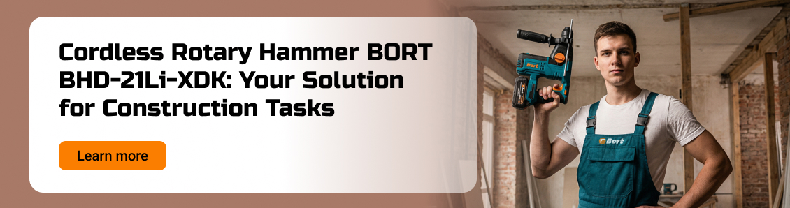The BORT BHD-21Li-XDK cordless hammer drill is a strategic choice for those who value their time, budget, and results. It offers a rare combination of corded power, cordless freedom, thoughtful ergonomics, and a favorable price due to its flexible configuration.