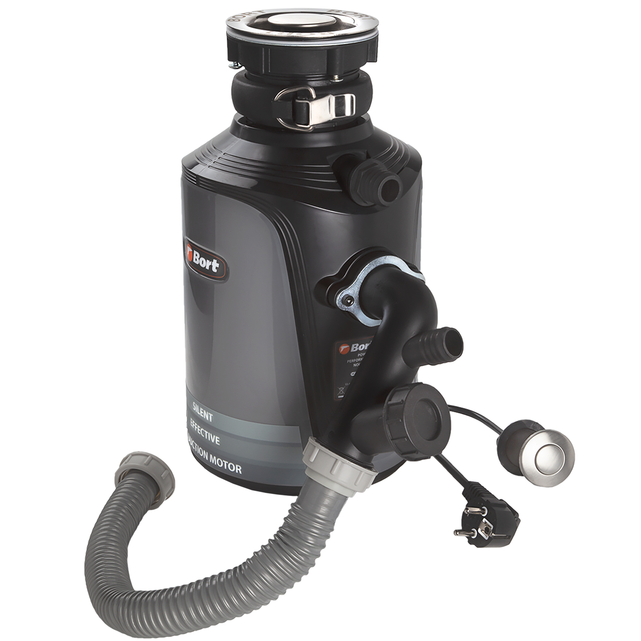 Can’t decide who in your family must take the trash out? Keep arguing about it? You don’t need to visit a psychologist to solve the problem – just buy a food waste disposer BORT Alligator Plus! The powerful and ergonomic sink disposer will cope with vegetable peels, dispose of rotten and expired products, leftovers from main and second courses, tea leaves, and is able to process even chicken and fish bones! From now on, you will use the trash bin only for packs!